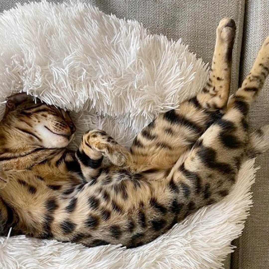 Our Calming Bed is stuffed with high-quality fleece that is certified vegan, hypoallergenic, and stain-resistant. A high-quality material purr-fect for every home!