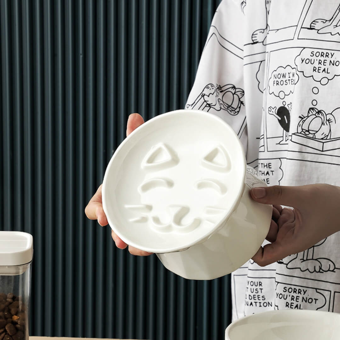 Featuring raised ridges and a cute feline design, this innovative slow feeder purposefully extends your cat's mealtime, to prevent your cat from overeating and promote optimal digestion.